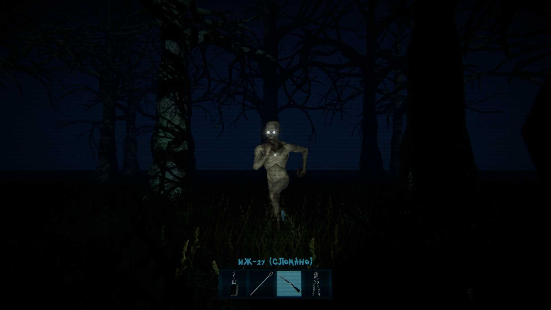 First-person psychological horror with gritty VHS aesthetic and analog distortion.